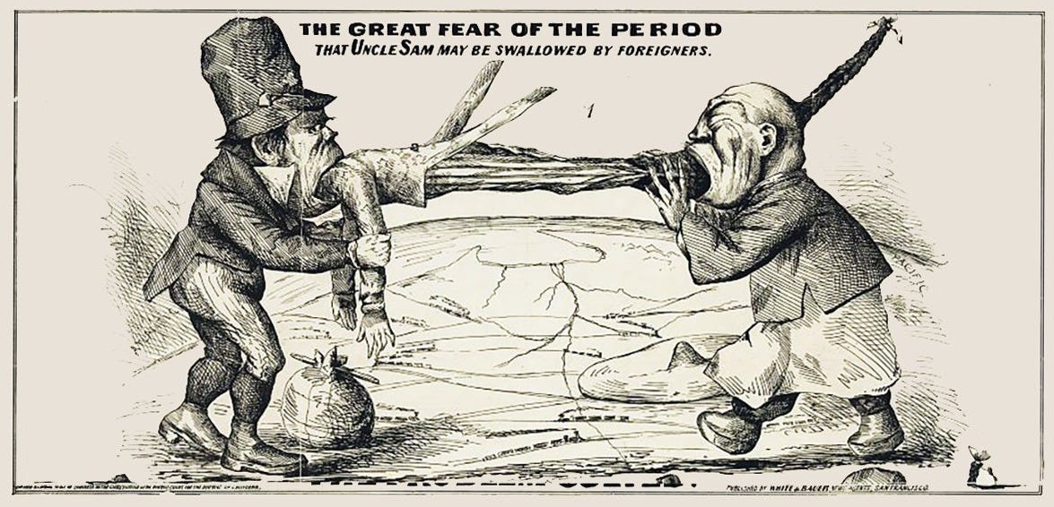 Now, the question of immigrants, specifically on the West Coast, was whether the Fourteenth Amendment included the children of immigrants. This situation was seen in the case of United States v. Wong Kim Ark (1898). Wong Kim Ark, born on American soil in San Francisco to Chinese parents who were not recognized as citizens, left the United States for a brief visit to China in 1894. Upon his return in 1895, immigration officials refused to let him enter, citing the provisions of the Chinese Exclusion Act. Wong claimed citizenship under the Fourteenth Amendment, with his lawyers arguing the jus soli principle, which, on its face, promised that “all persons born” within U.S. jurisdiction were citizens.