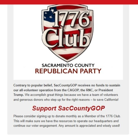 According to the Sacramento County GOP's own website, they paint a stark picture of abandonment: "Contrary to popular belief, SacCountyGOP receives no funds to sustain our all-volunteer operation from the CAGOP, the RNC, or President Trump. We accomplish great things because we have a team of volunteers and generous donors who step up for the right reasons – to save California!"