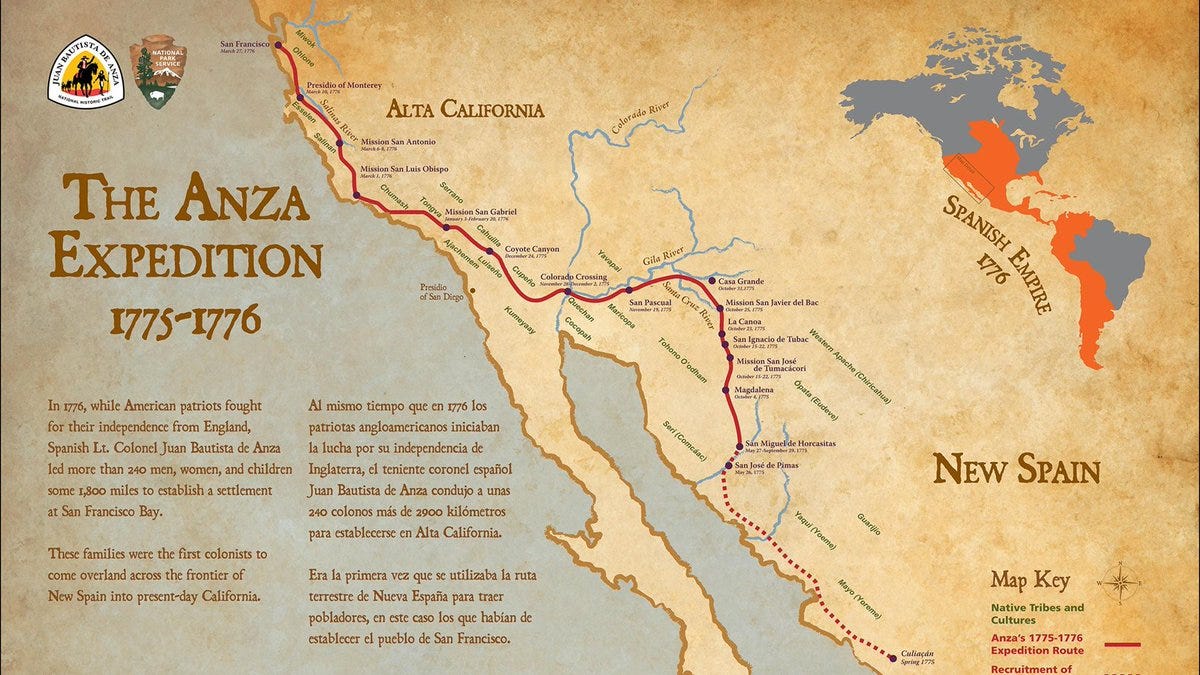 Anza’s life ended in Arizpe, Sonora, on December 19, 1788, at 52. His death marked the close of a storied career that left an indelible mark on the Spanish colonization of the Southwest and California. Anza’s expeditions are celebrated for establishing a viable overland route to Alta California, paving the way for settlements such as San Francisco and fostering connections across vast and rugged territories. Today, Anza’s legacy symbolizes leadership, vision, and perseverance. His contributions are commemorated through landmarks like the Juan Bautista de Anza National Historic Trail, which honors the route he charted and the communities he helped establish. Anza’s name remains etched in the history of California and the American Southwest, a testament to his pivotal role in shaping the region.