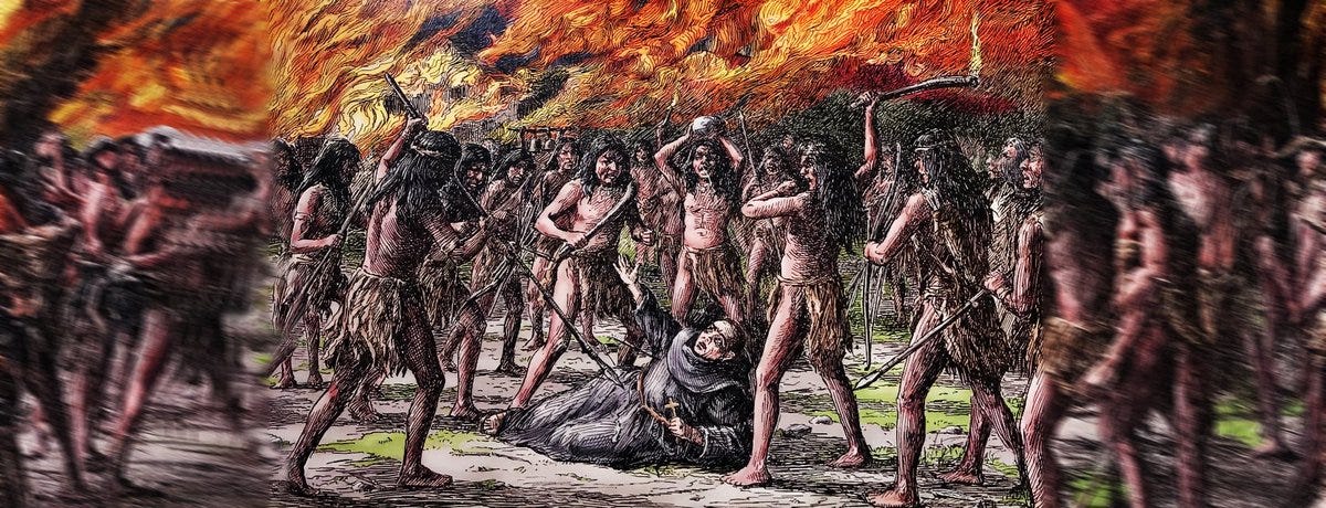 But love met fury. The warriors stripped him, dragged him to a creek, and beat him with stones, sticks, and a battle axe. Eighteen arrows pierced his flesh, his skull crushed by a stone—a martyrdom that echoed the saints he so admired. Palóu wrote of this, his pen likely trembling with sorrow: “The Indians let out their war cry… until his naked body reached the creek… unrecognizable.” The four soldiers who were left fought valiantly, one falling. Father Fuster and two boys loaded their guns in desperate defense. The presidio, a mere stone’s throw away, slept through the chaos, its guards oblivious until dawn revealed the smoldering ruin.