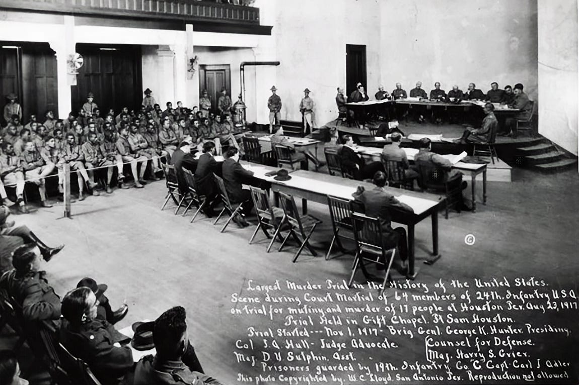 Through a driving rain, they marched into Houston, and violence erupted. Fifteen lives were lost—four policemen, a member of the Illinois National Guard among them. Two Black soldiers died in the clash, one turning his weapon on himself, a bullet to the head, rather than risk capture. “Ten men probably ‘could not begin to tell the complete story of what took place that night,’” Army prosecutor Colonel Hull would later reflect, yet in the aftermath, sixty-three faced charges of mutiny, and thirteen were hanged, still clad in their army khakis.